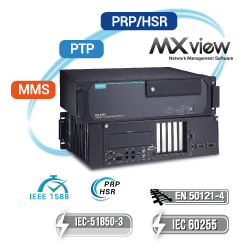 In power applications, compliance with IEC-61850-3, IEEE 1613, IEC 60255, and EN 50121-4 ensures stable and reliable operation. The DA-820C also supports PTP for a time-synchronized network. In addition, the computers can be monitored through MMS/SNMP and managed using our PRP-HSR network visualization solution provided by MXview Power.